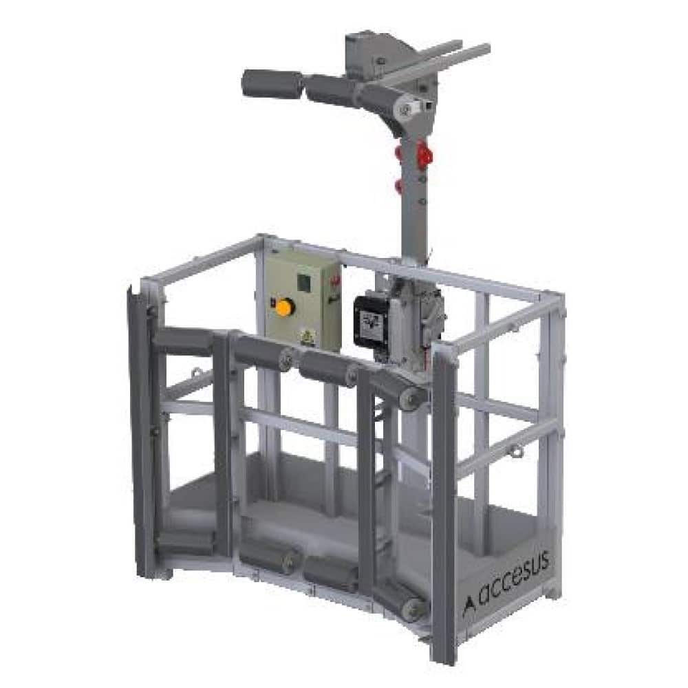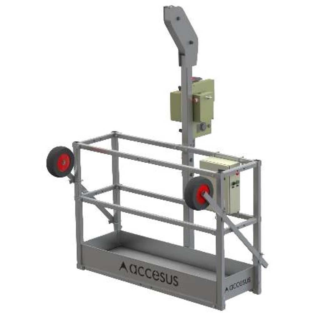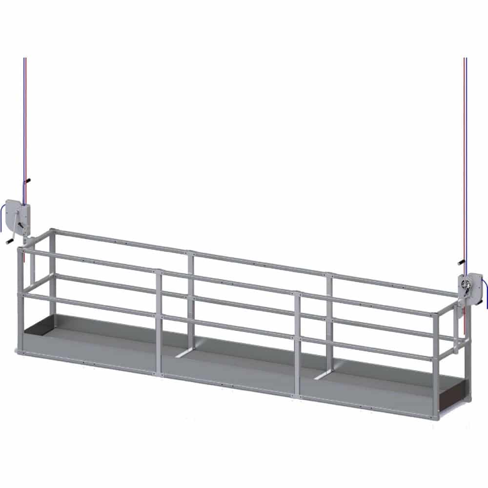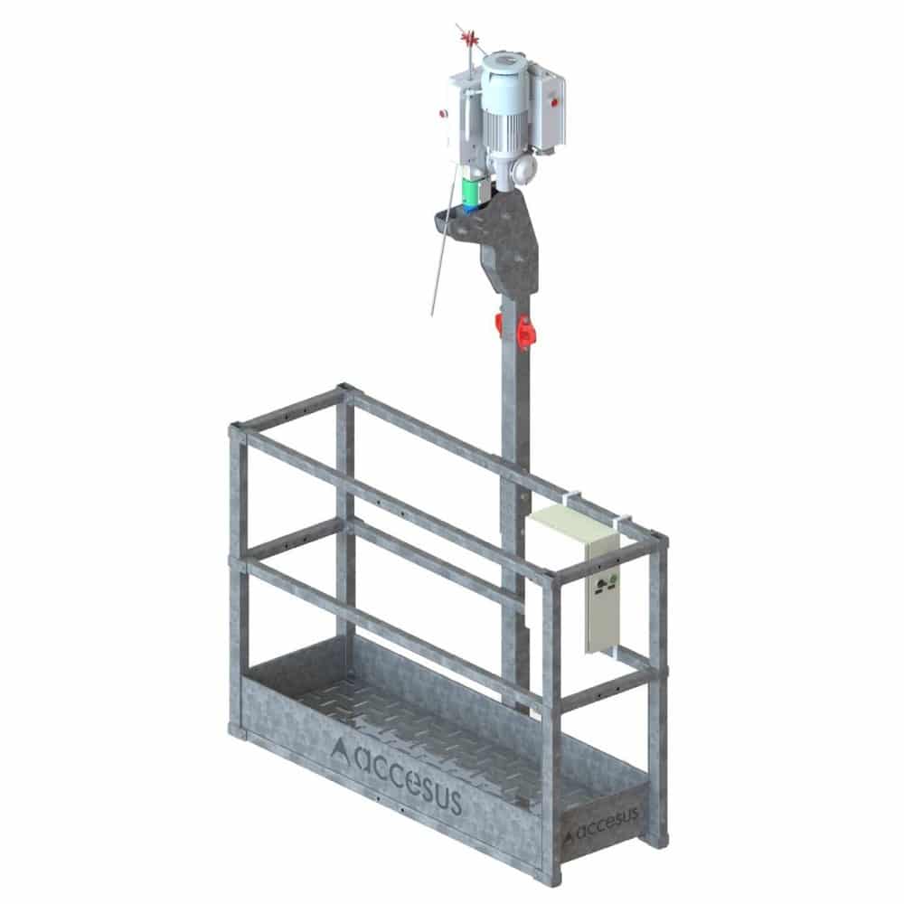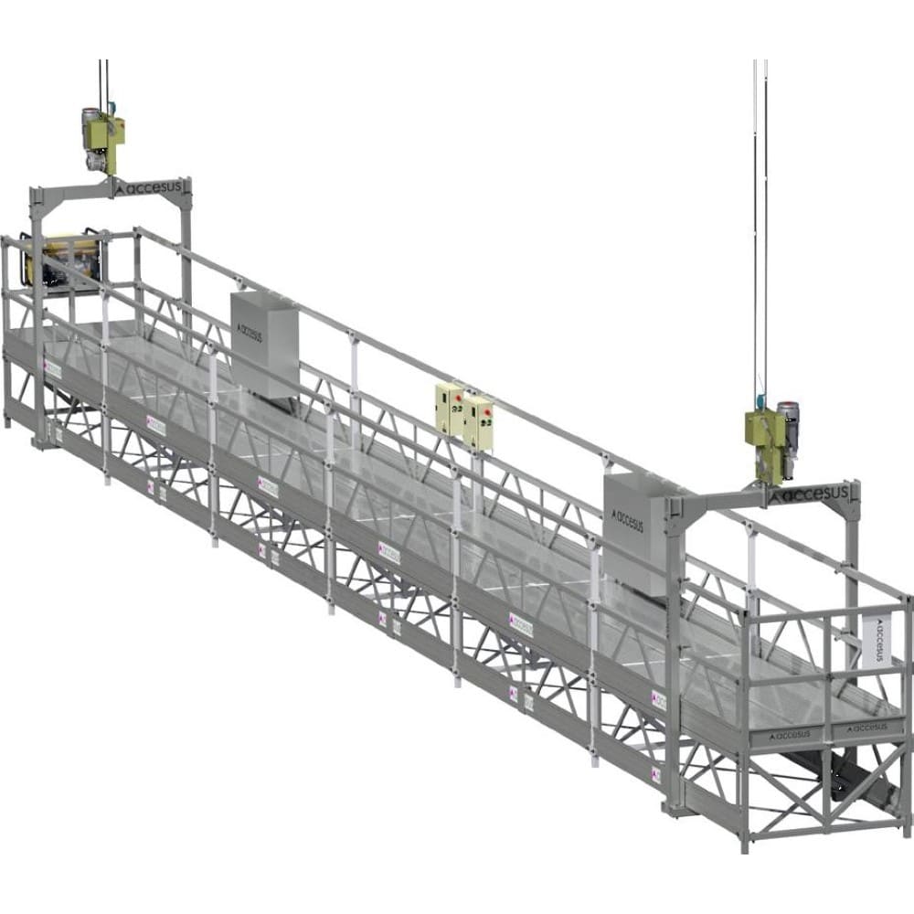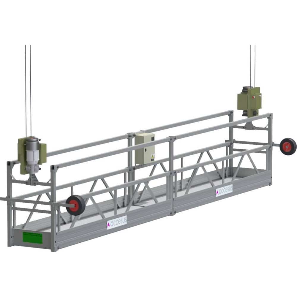 Andamio colgante Accesus Basic, diseñado para elevación de personas y cargas y conforme a la norma EN1808.