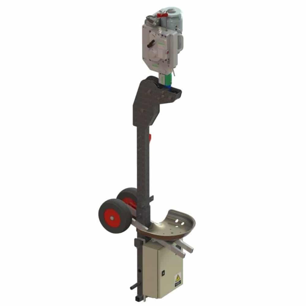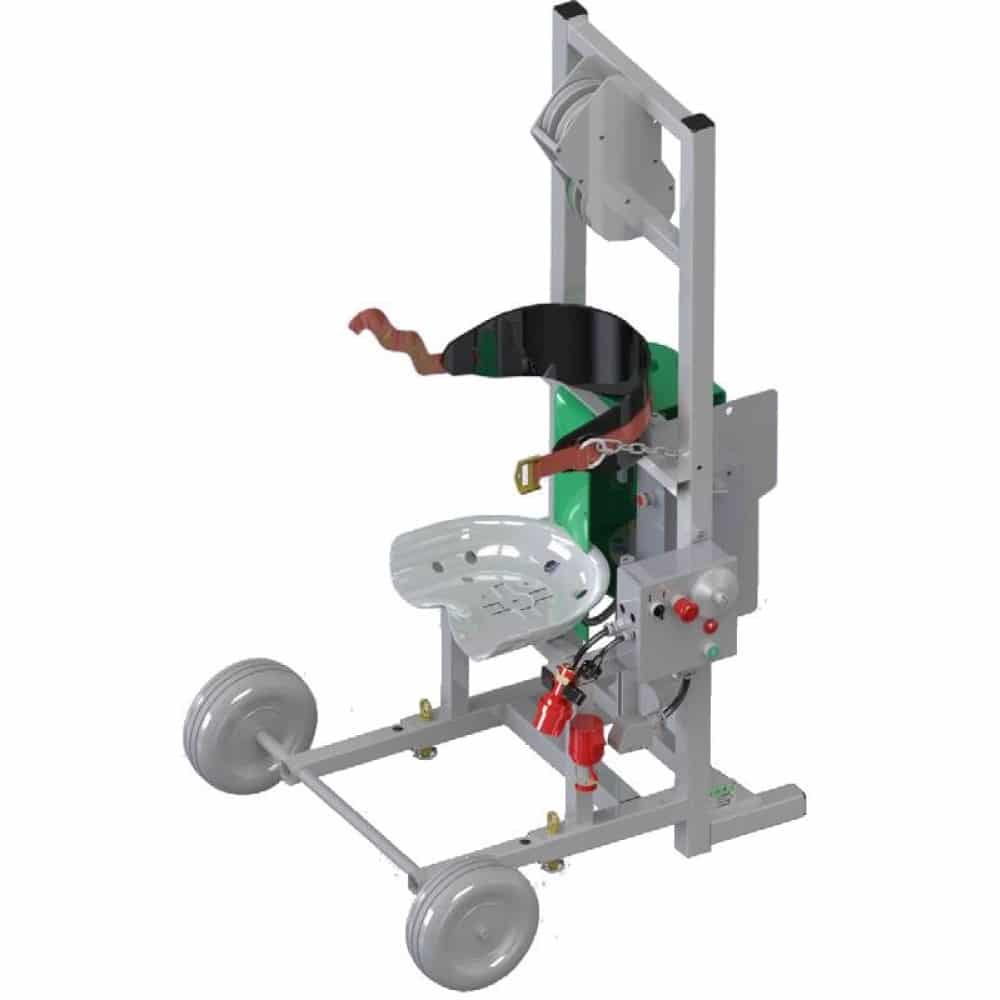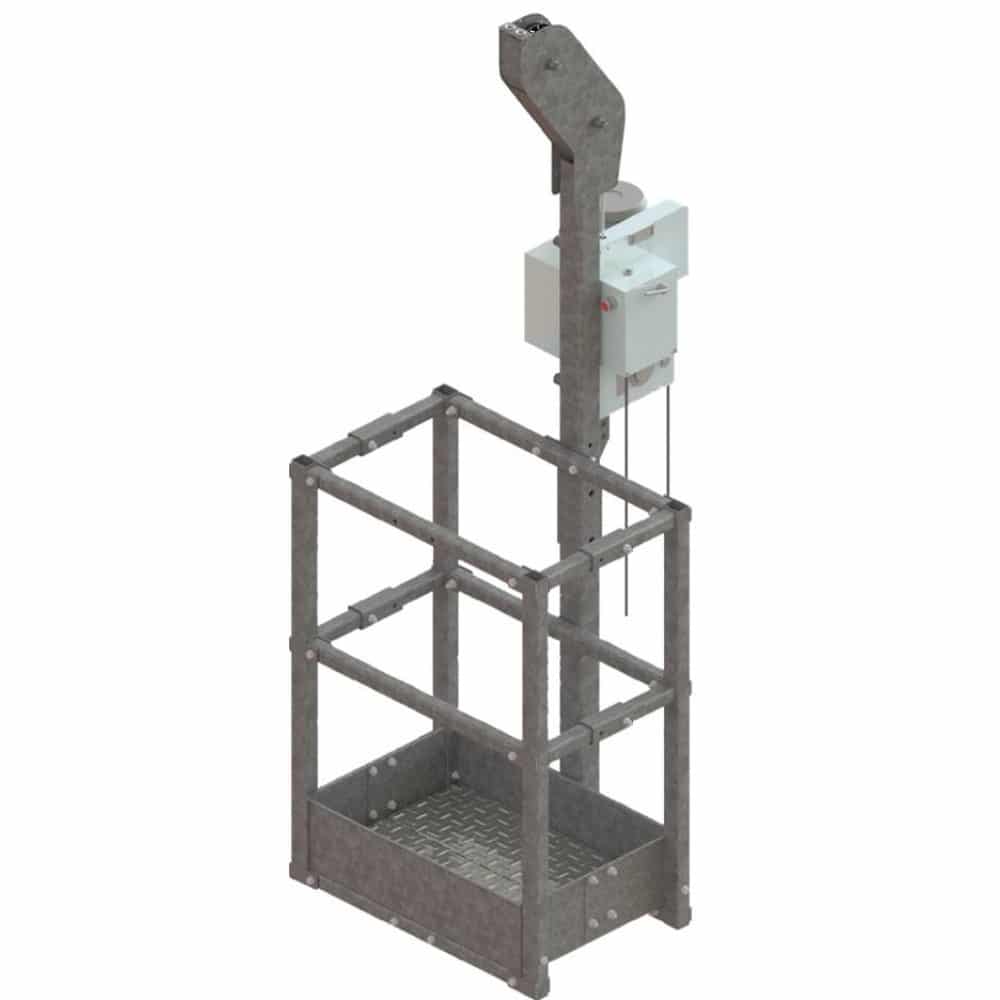 La silla colgante está fabricada en aluminio y equipada con un elevador manual de manivela m. lift 400.