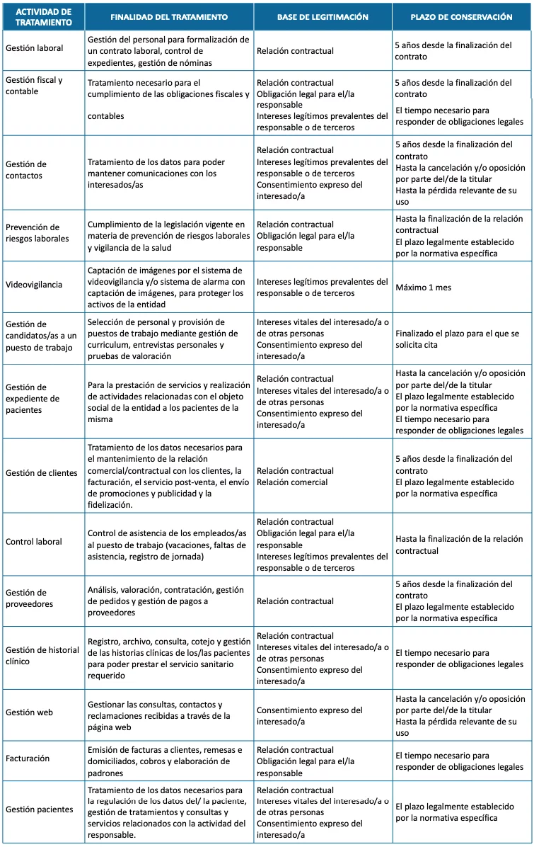 Detallamos a continuación las finalidades de los tratamientos de datos llevados a cabo por alguno, o todos, de los Responsables de Tratamiento enumerados con anterioridad.