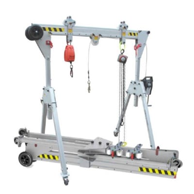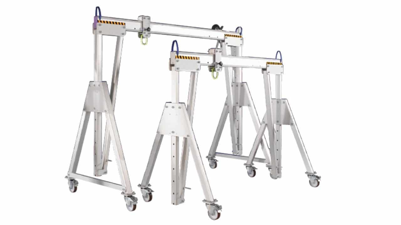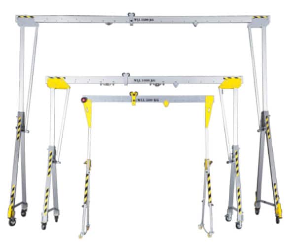 Todos nuestros pórticos para personas y cargas en venta son desmontables en tres piezas, están fabricados en aluminio y son de la mayor calidad. Se entregan con sus correspondientes certificados y marcados exigibles. Los pórticos se pueden usar para: Elevación de vehículos, compuertas, montaje de escaleras mecánicas, maquinaria industrial, obras de arte.