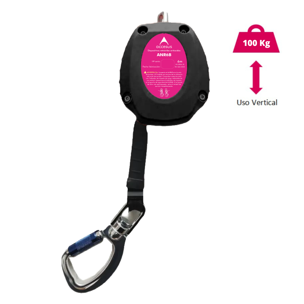 Anticaídas retráctil de correa ligero con una longitud máxima de 6m.