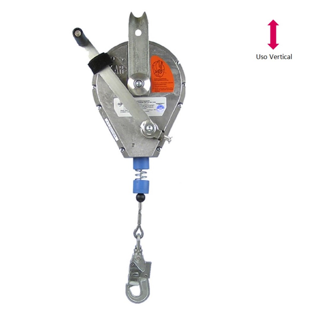 Anticaídas retráctil con rescatador modelo ARR 10. Para rescate rápido y seguro de personas hasta 60 m de longitud. Anticaídas EN 360 y EN 1496.