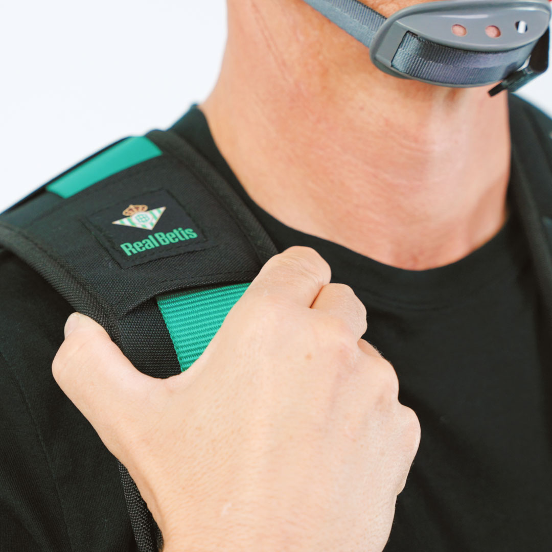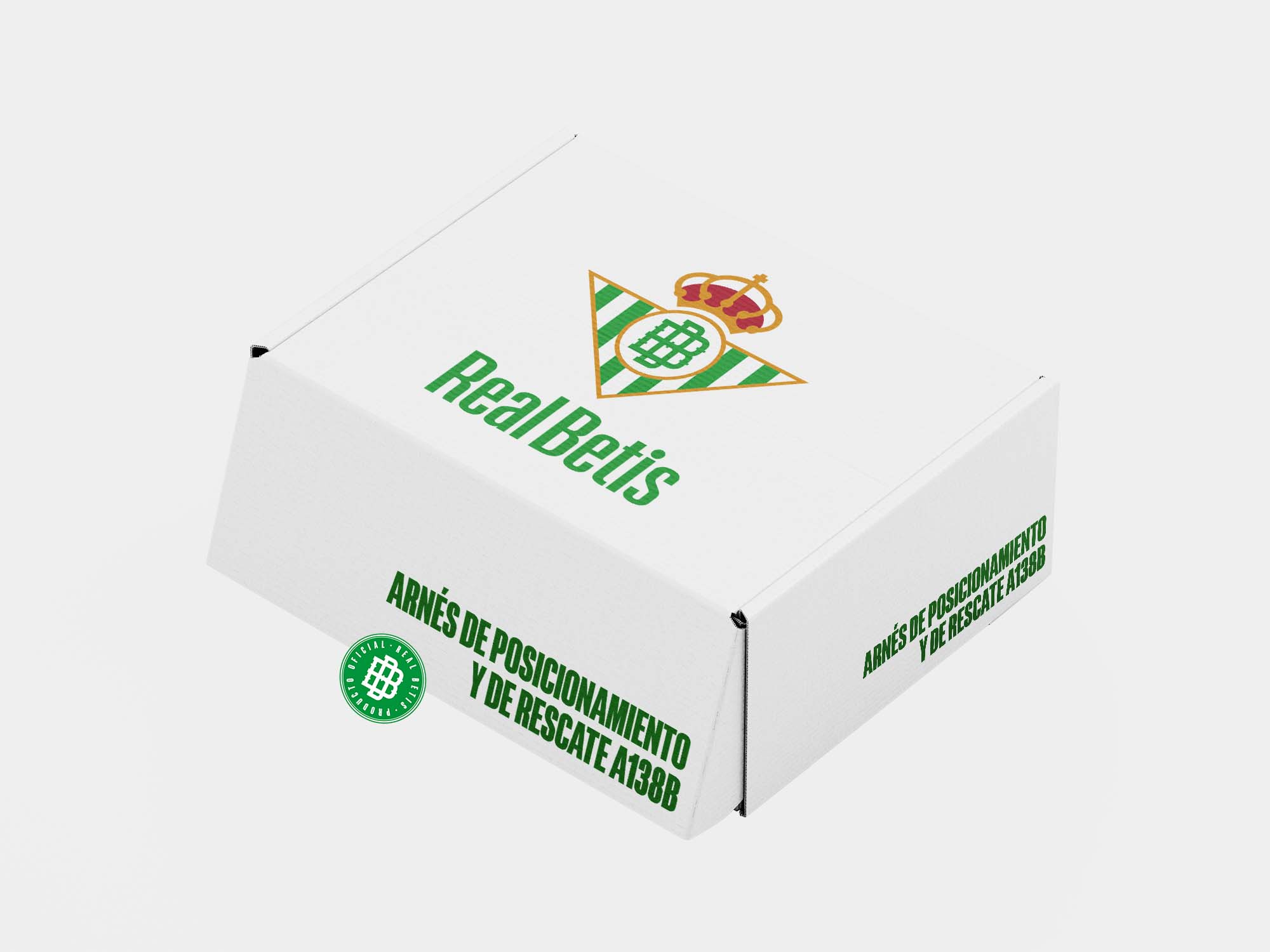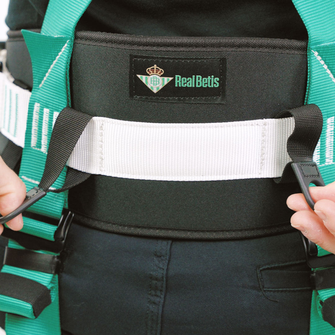 Arnés de seguridad oficial del REAL BETIS BALOMPIE, incluye bolsa de transporte y caja con los anagramas oficiales del Real Betis Balompié.