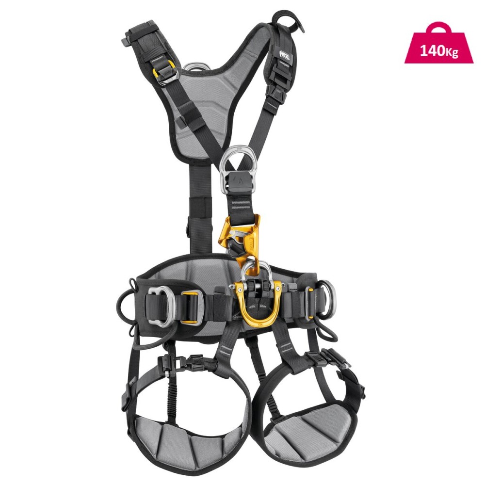 El arnés ASTRO está diseñado para los trabajadores con cuerda en accesos difíciles. Su diseño se adapta a las características del desplazamiento y del ascenso por cuerda. Los acolchados 3D y la construcción semirrígida del cinturón y de las perneras, ofrecen más confort en todas las fases de trabajo. Su punto de enganche ventral con cierre permite una instalación óptima del equipo necesario para los desplazamientos. Su bloqueador integrado CROLL L favorece la eficacia durante los ascensos por cuerda. El cinturón, con sus puntos de enganche laterales metálicos, sus anillos portamaterial y sus trabillas portaherramientas, permite organizar y transportar todo el material necesario en una jornada de trabajo. Por último, la colocación y las regulaciones son simples y prácticas, incluso con guantes, gracias a las hebillas con cierre FAST y autobloqueantes DOUBLEBACK PLUS.