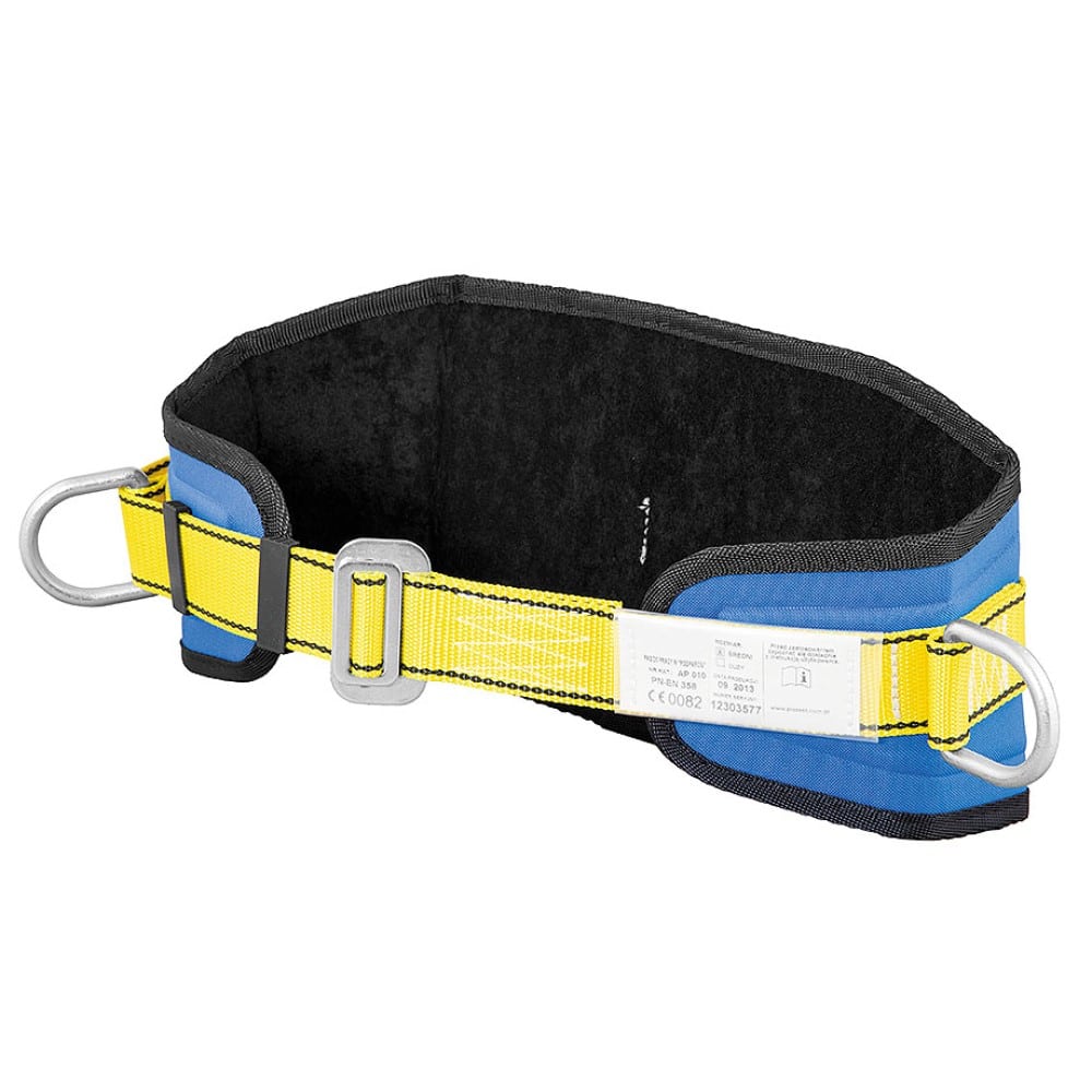 Cinturón de posicionamiento básico con dos puntos de anclaje laterales, hebilla de conexión-regulación. Posee un acolchado en la zona lumbar. Tiene un peso de 460 gr.