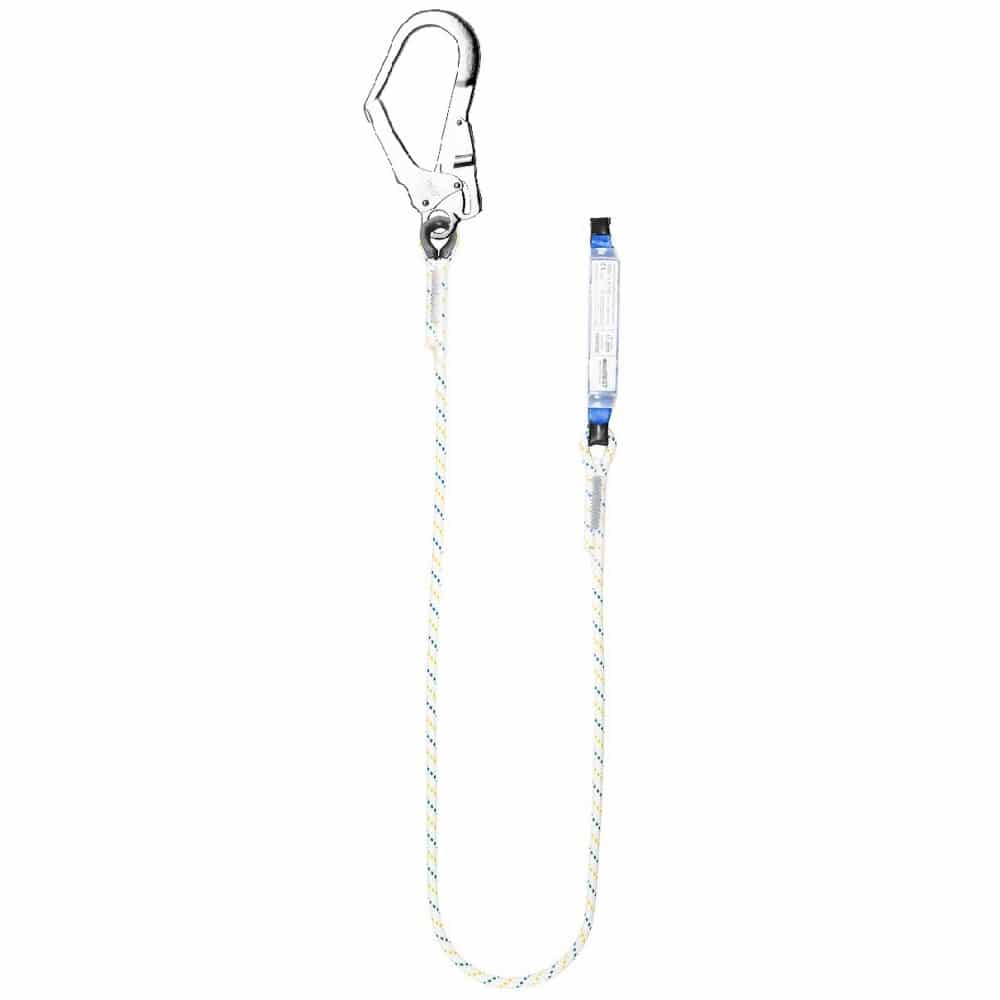 Eslinga universal anticaídas con absorbedor de energía ABE. Fabricada en poliamida con guardacabos en un extremo y absorbedor de energía en el otro. Diámetro de 10,5mm. Longitud 1,5m y 2m.