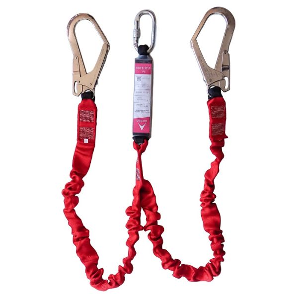 Eslinga doble elástica con absorbedor, mosquetón y conectores de acero