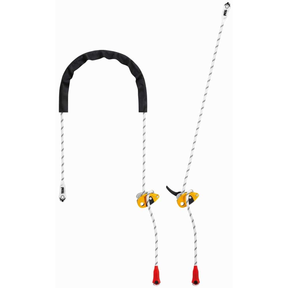 Terminales cosidos en las dos puntas con funda plástica para mantener el conector en posición y proteger la cuerda de la abrasión. Funda de protección que permite proteger la cuerda de los puntos de contacto agresivos, favoreciendo al mismo tiempo su deslizamiento. Esta protección es amovible, lo que permite ascender lo más cerca posible del anclaje cuando el elemento de amarre se utiliza en simple. Fabricante Petzl.