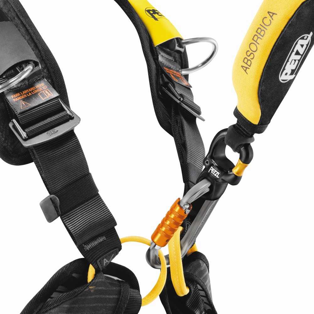 – Punto de conexión para un mosquetón con bloqueo de seguridad. Este punto lleva integrado un anillo flexible que ayuda a mantener al mosquetón según el eje mayor.
