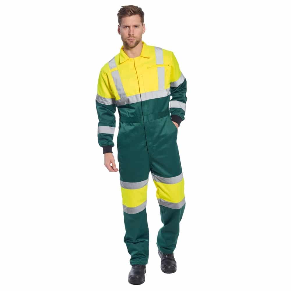 Este mono garantiza la máxima comodidad, durabilidad y seguridad. El moderno color de contraste combinado con características inteligentes como un bolsillo oculto para el teléfono móvil, un bucle de radio y puños de punto hacen de esta una solución ideal para la ropa de trabajo para una variedad de profesionales.