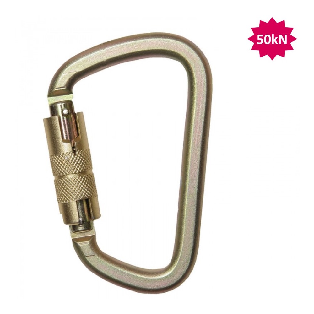 Mosquetón de acero cincado. Cierre automático. Apertura 25mm. Peso 200g. Certificación CE EN 362
