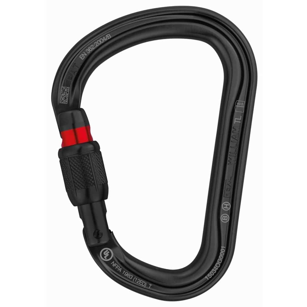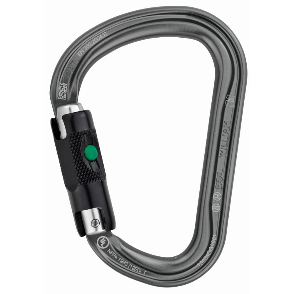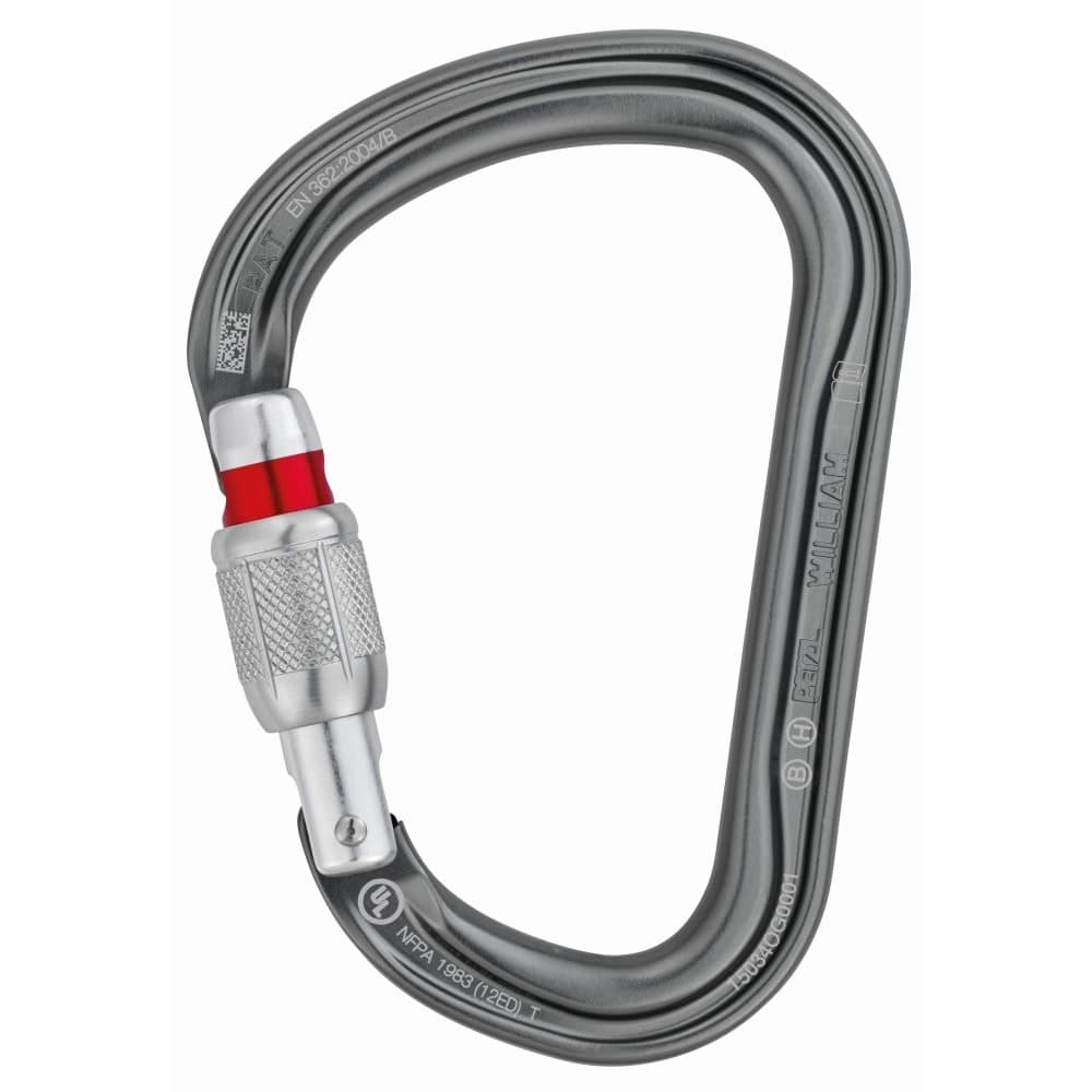 El mosquetón asimétrico y ligero de gran capacidad WILLIAM está fabricado con aluminio. Tiene una forma de pera práctica para conectar fácilmente varios elementos. Su diseño interior fluido y el sistema Keylock facilitan las manipulaciones. El mosquetón WILLIAM está disponible en tres sistemas de bloqueo de seguridad: sistemas automáticos TRIACT-LOCK y BALL-LOCK y sistema manual SCREW-LOCK. El WILLIAM se puede combinar con la barra CAPTIV para favorecer la solicitación del mosquetón según el eje mayor, limitar el riesgo de volteo y solidarizarlo con el aparato.