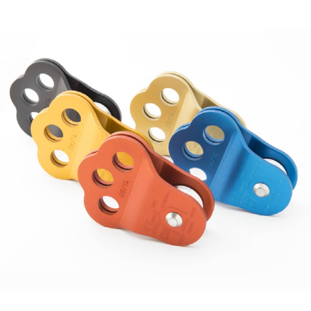 Polea con 3 punto de anclaje. Dimensiones: 99x78x33 mm. Carga de trabajo: 5kN Ø máximo de la cuerda: 10 mm. Apertura tipo tijera (360º)