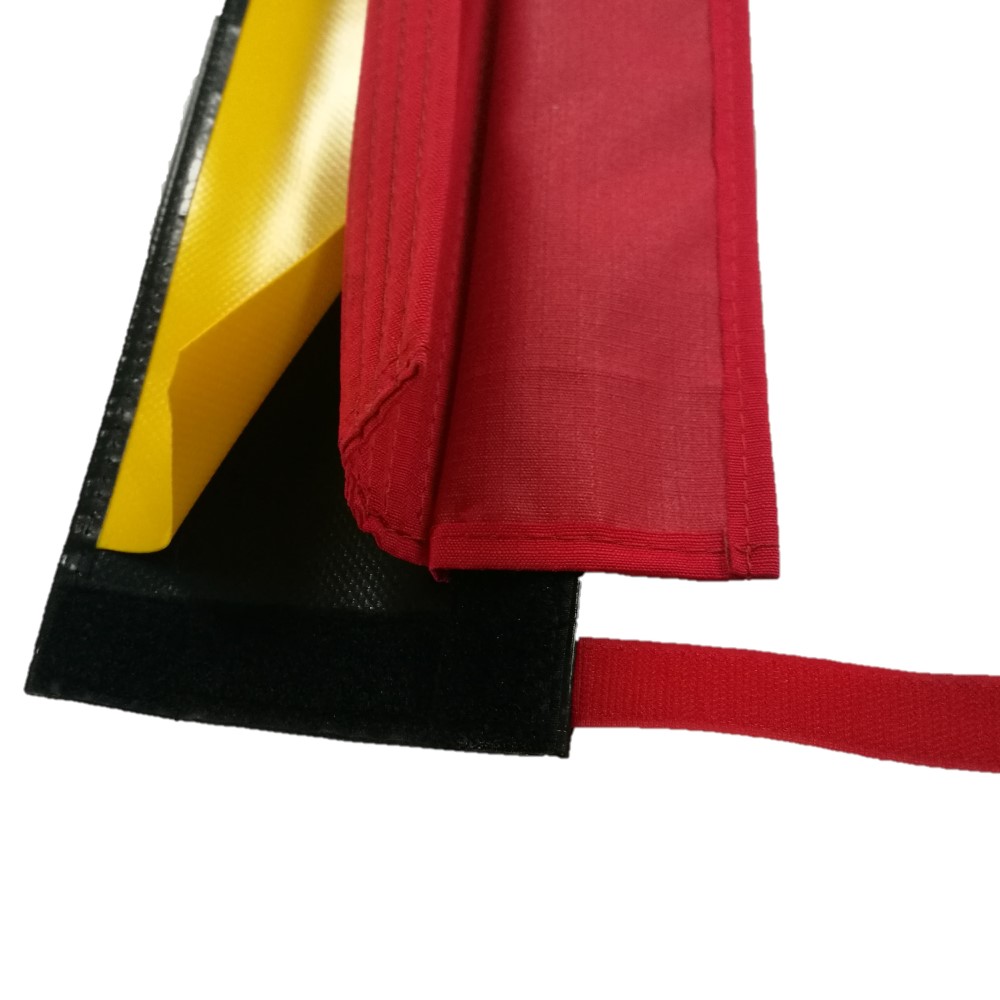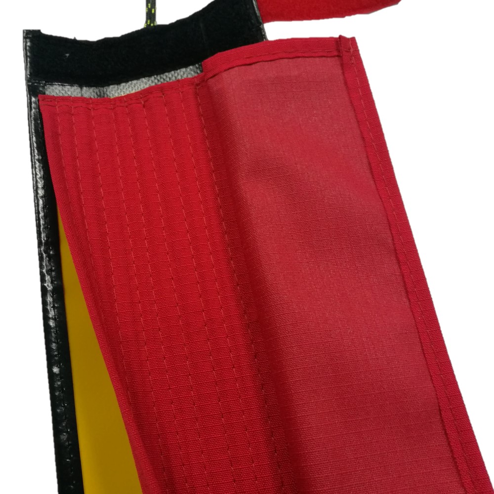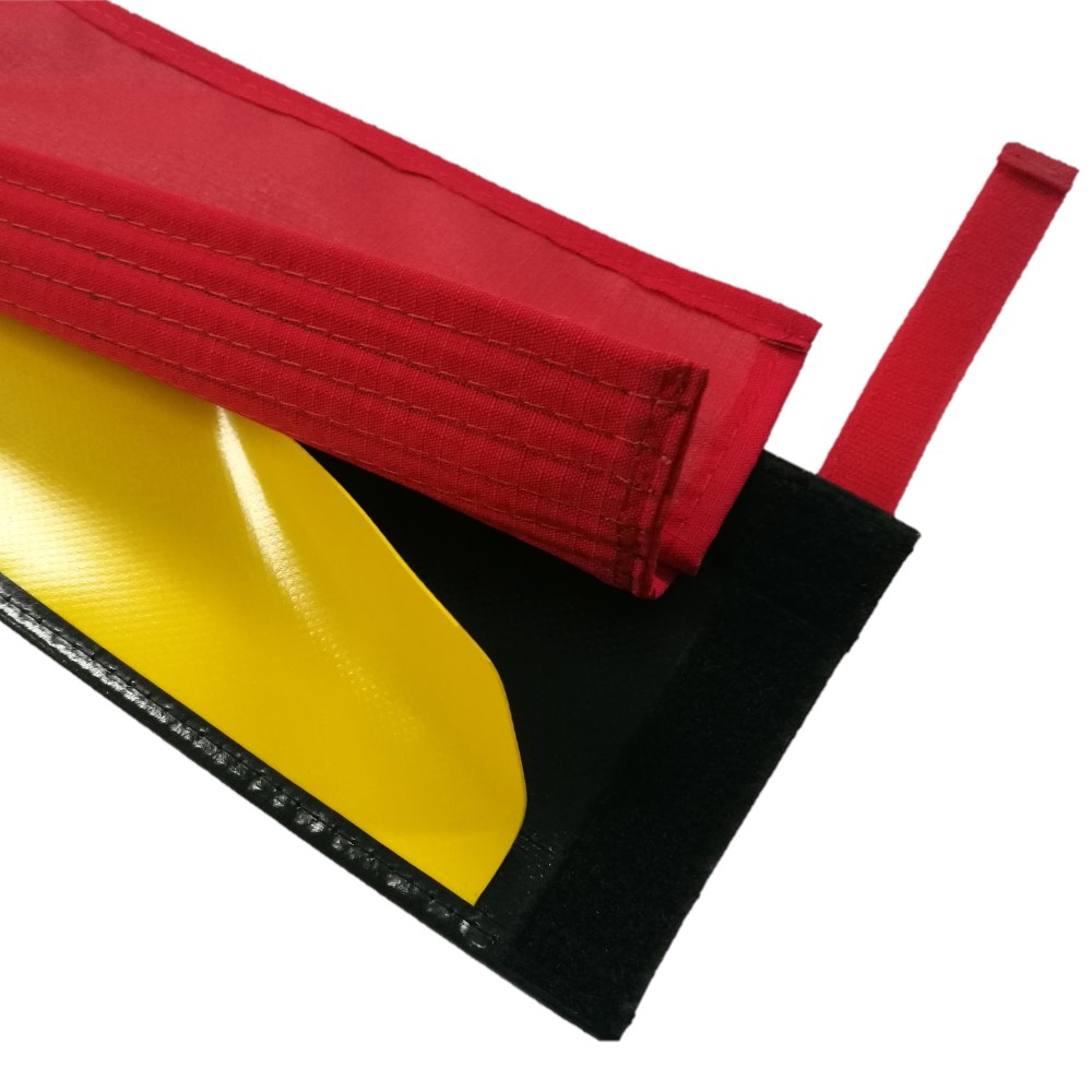 Dos capas, una externa negra y una interna amarilla que aporta resistencia y control de uso. Fabricado por SAULEDA en lona de PVC de 900 gramos/m2.