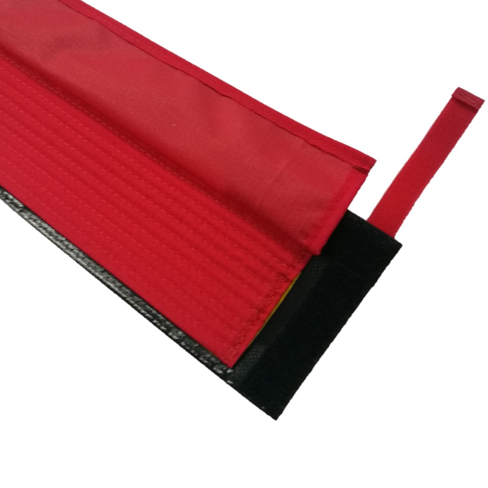 Sistema de cierre de 3 cm de anchura a lo largo del protector con VELCRO. Sistema de cierre total con VELCRO ROJO de 2 cm.