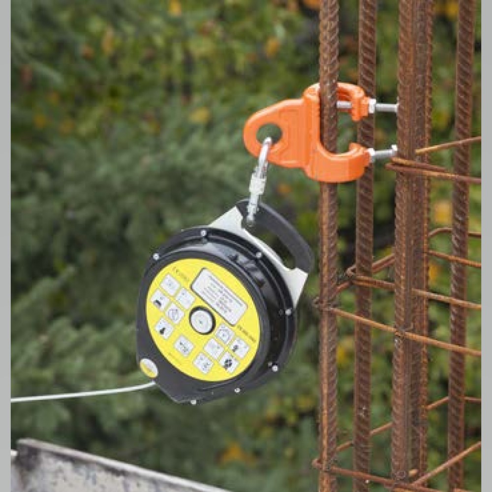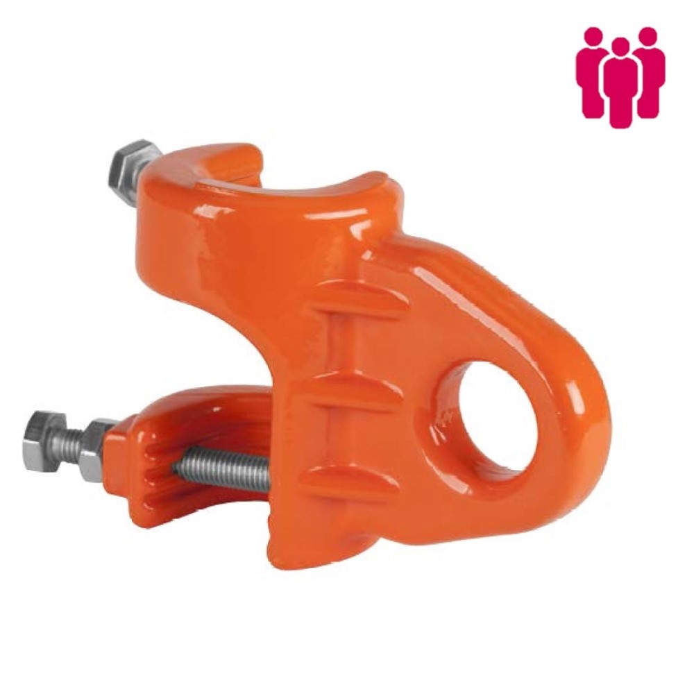 Punto de anclaje temporal de fundición de acero. Apto para 3 personas a la vez. Diseñado para adaptarse en barras acanaladas de hasta 32mm de diámetro. Carga de trabajo 30kN. EN795A