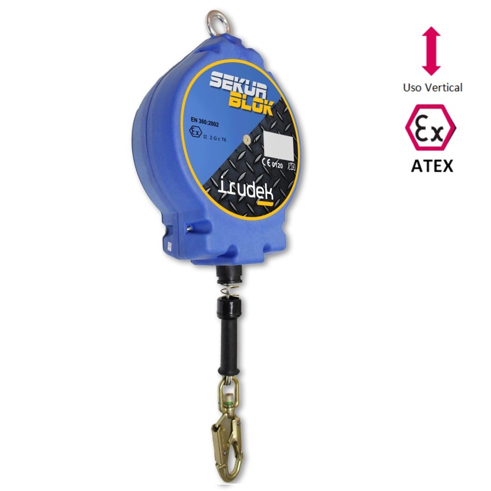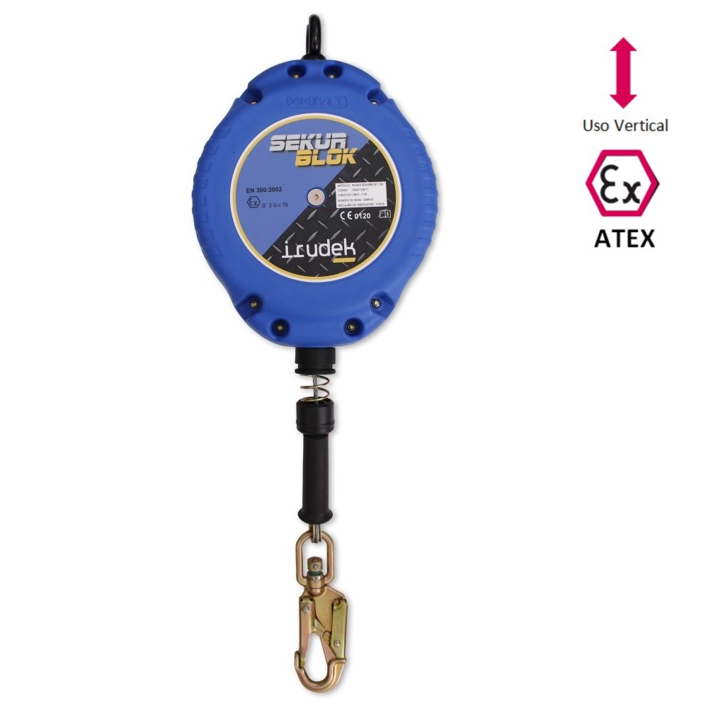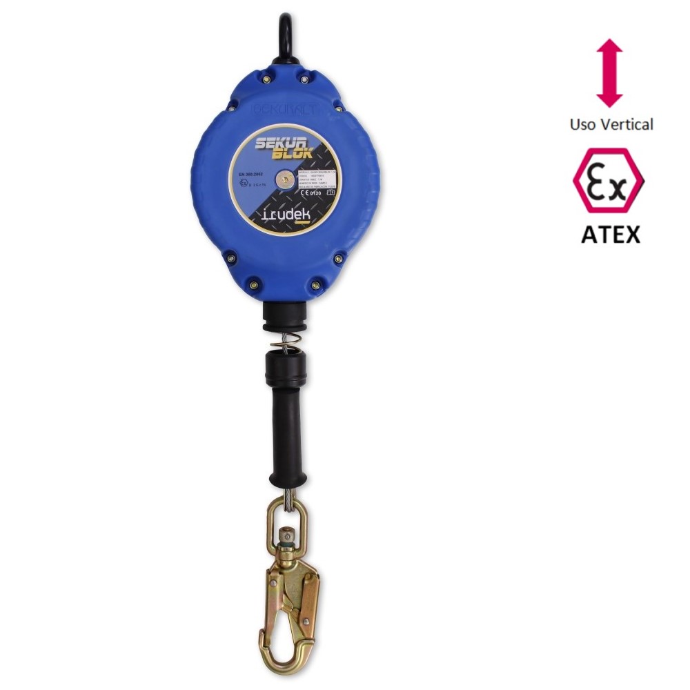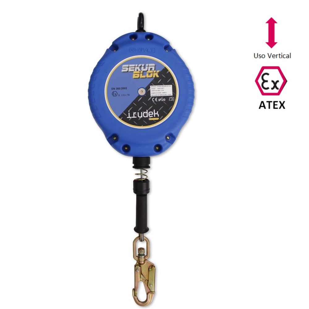 El anticaídas Sekurblok está certificado conforme a la Directiva 94/9/CE, sobre los aparatos y sistemas de protección para uso en atmósferas potencialmente explosivas.