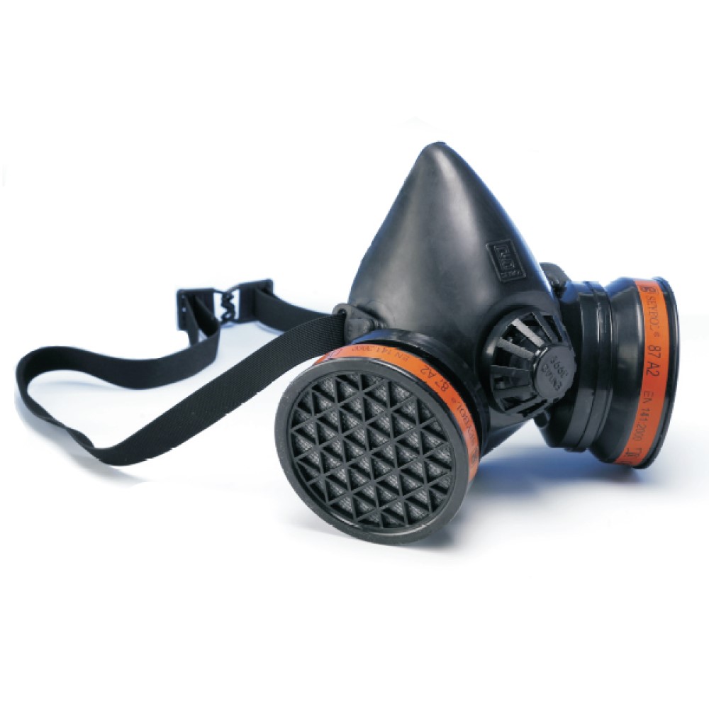 Mascarilla buconasal de goma que no produce alergias ni dermatosis. Es inalterable a la radiación ultravioleta y a los agentes atmosféricos. Diseño ergonómico, con pliegue interior para mayor comodidad y hermeticidad con la cara del usuario. Los puntos de sujeción del atalaje están integrados en el cuerpo de la mascarilla, reduciendo el riesgo de fugas. Óptimos resultados de hermeticidad, tanto de las válvulas de exhalación, como con la cara del usuario. Sistema de atalaje cómodo y ergonómico.