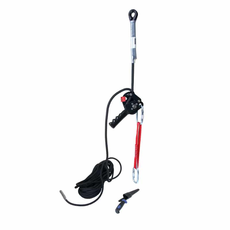 Un dispositivo de descenso manual que es utilizado por el mismo usuario que realiza el descenso o rescate. Este dispositivo se conecta a una eslinga.