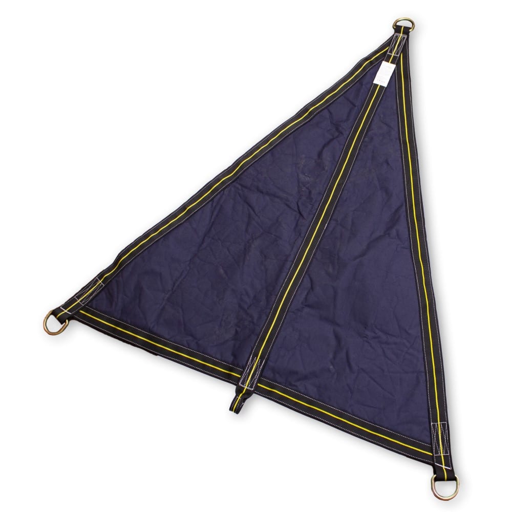Triángulo de evacuación para utilización en trabajos de rescate de personas accidentadas, que busca la facilidad y rapidez de colocación y ajuste en cualquier situación. Contiene 3 anillas de fijación.