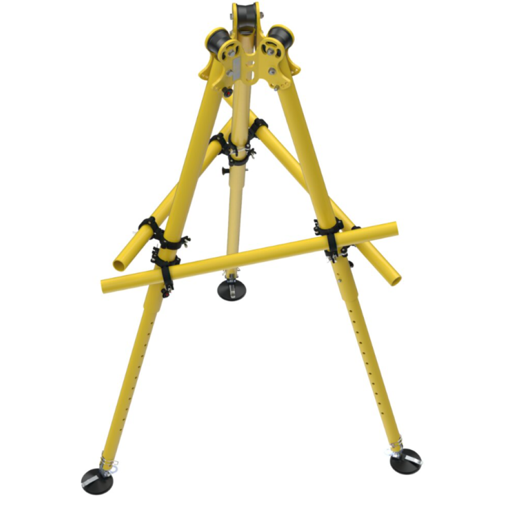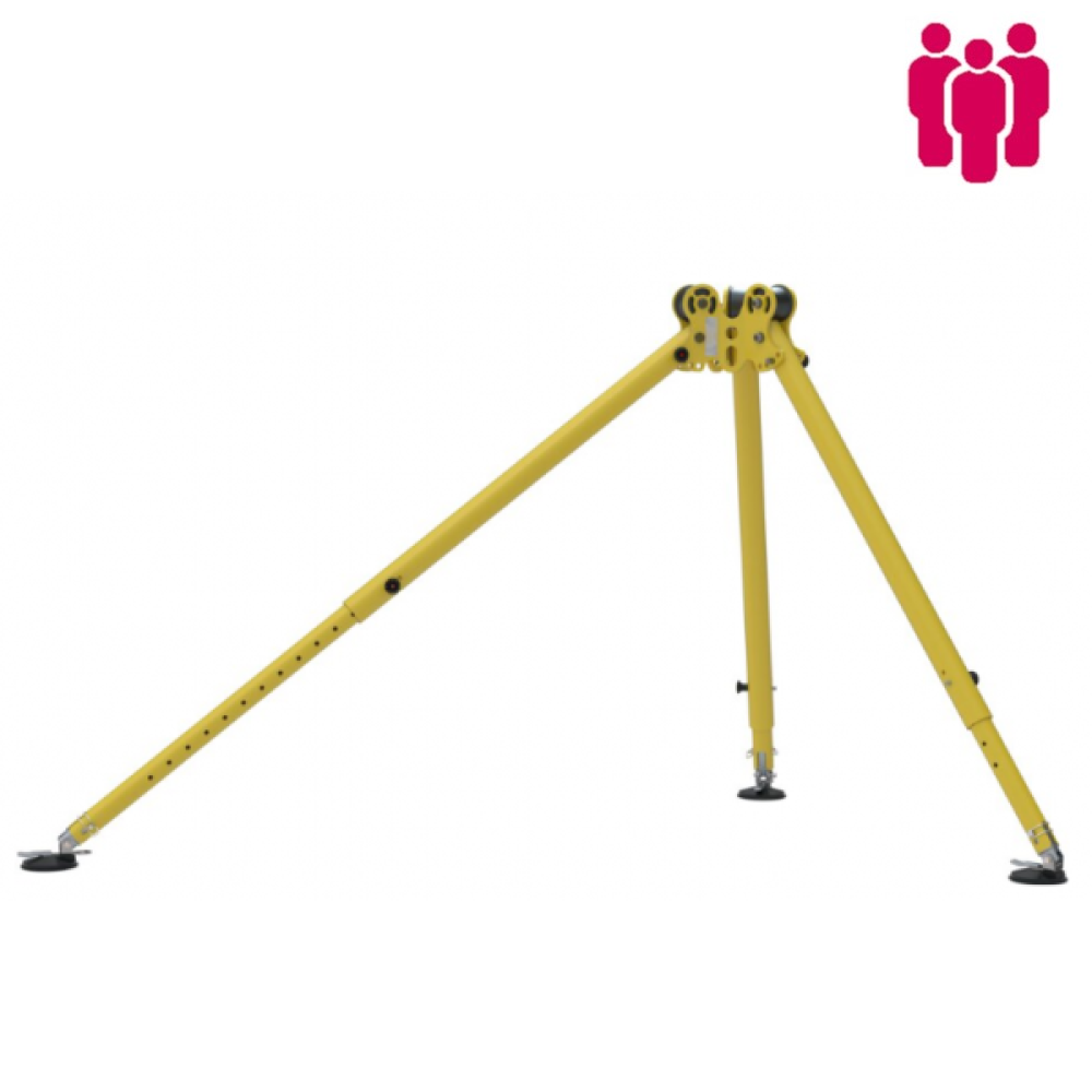 El trípode de seguridad compacto TRI16 es un punto de anclaje que cumple con las normativas EN795/B y TS16415/B para equipos de protección contra caídas. Diseñado para brindar protección a tres personas simultáneamente, consta de un cabezal de aluminio con recubrimiento de polvo, 3 rodillos para guiar cuerdas de evacuación y 3 puntos de anclaje en las paredes laterales. Cada punto puede ser utilizado por un usuario a la vez.